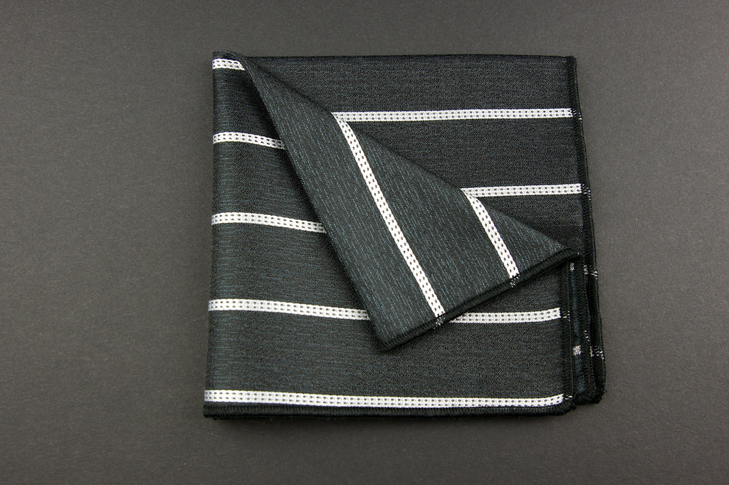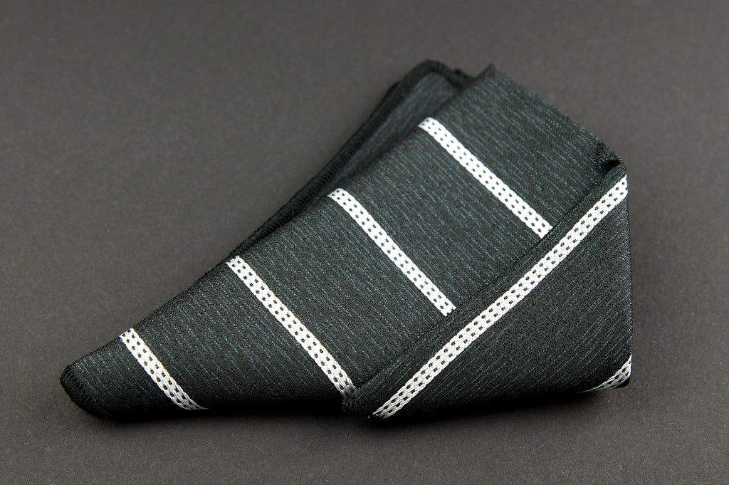 Batista de buzunar are un model delicat si este din microfibra. Fundalul negru este strabatut de dungi albe pentru contrasul necesar.