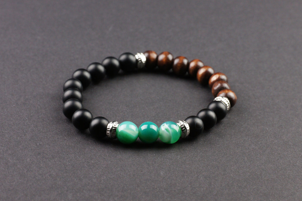 Bratara este facuta dintr-o combinatie de margele de piatra si lemn. Este facuta manual si este perfecta pentru acel detaliu extra de care este uneori nevoie la o tinuta. Este livrata intr-o cutie separata.